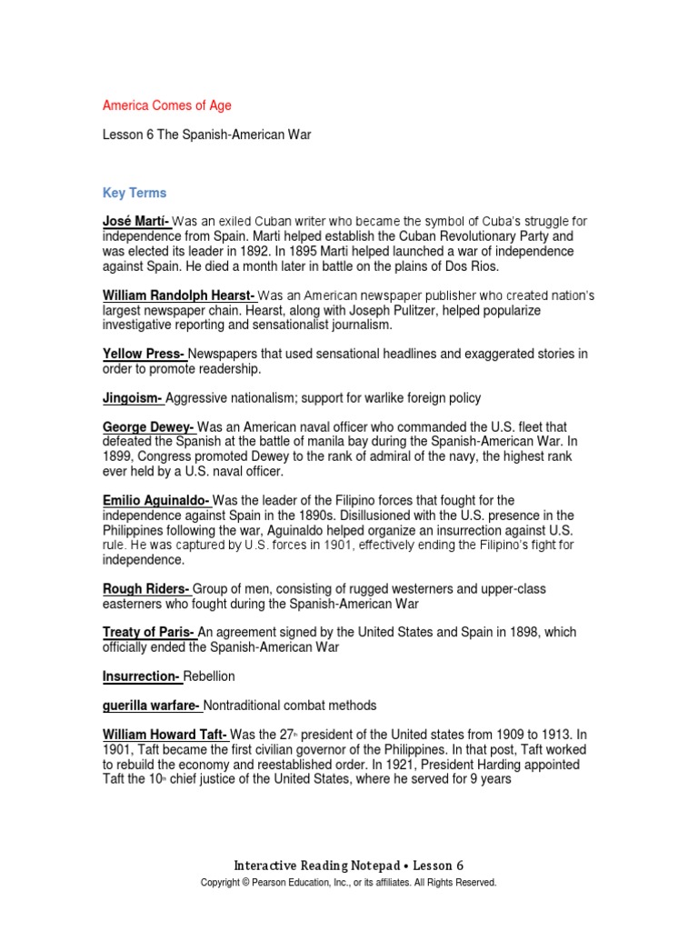 Acquisition of territories in the western pacific and latin america. Anticipating war after the sinking of maine, assistant secretary of the navy theodore roosevelt telegraphed commodore george dewey with orders to assemble the us asiatic squadron at hong kong. Spanish american war worksheet for a worksheet on framing interviews and reports that have been translated to spanish in transcript and video plus subtitle form there are many ways to engage your students with democracy our story american history stories and activities enjoy exploring history. In 1898, the united states went to war with spain in what became the the american victory ended spain's era as a colonial power. Learn vocabulary, terms and more with flashcards, games and other study tools.